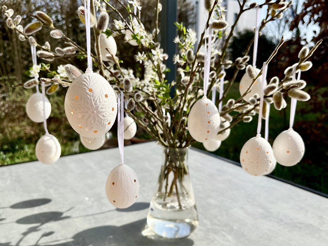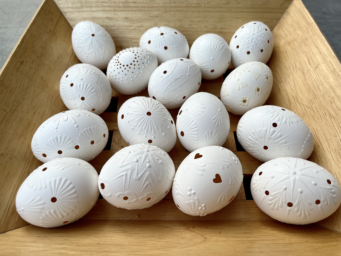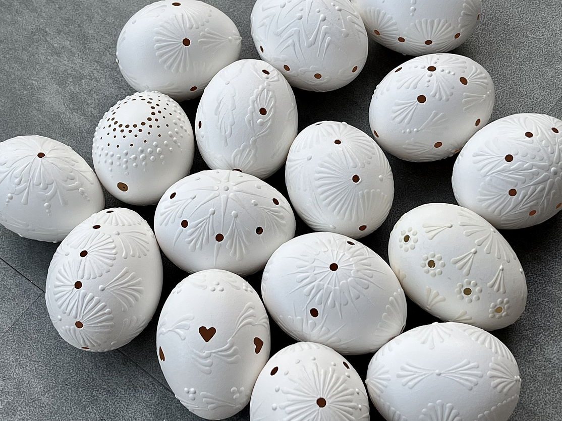 Learn how to create delicate white Easter eggs in the traditional Madeira style. In this workshop, we will guide you step by step on how to precisely drill the eggs and then decorate them using the wax technique to produce beautiful, intricate patterns.
